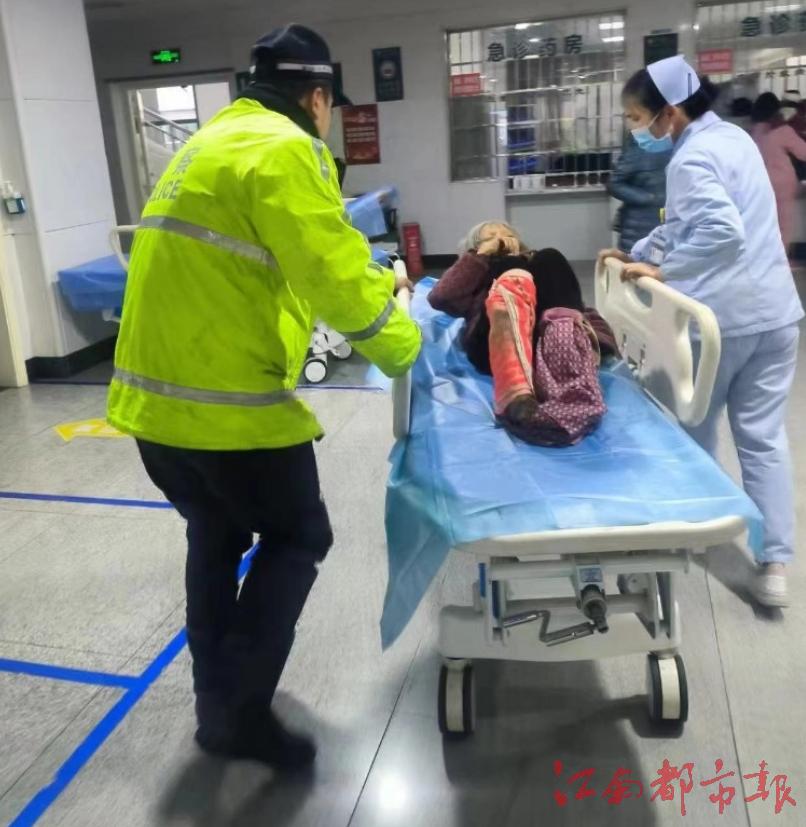 江南都市報訊 全媒體記者胡琴攝影報道:1月21日,記者從宜春交警部門獲悉,1月20日,今冬最強寒潮來襲,宜春市袁州區一名老人獨自烤火時,摔倒在火坑邊,因行動不便,腳掌伸入火中燒傷。家屬在送醫過程中,向宜春交警求助。鐵騎隊員李青在寒潮中冒雨開道,騎摩托車引導運送傷者的車輛以最快速度到達醫院,挽救了老人的生命。
