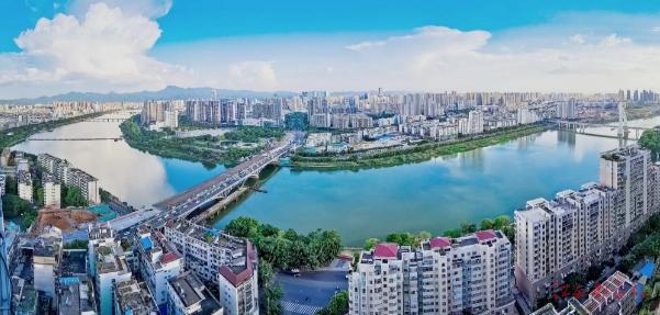 (圖說(shuō):贛州市中心城區(qū)藍(lán)天白云美如畫(huà))