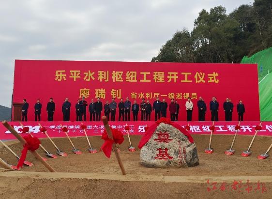江南都市報訊 全媒體記者余文斌攝影報道:2月18日上午,在樂平市鸕鶿鄉對家村,2024年一季度景德鎮市重大項目集中開工暨“十百千萬”工程動員大會順利召開,40個項目于當日集中開工,總投資額達到233億元。會上,作為該市的重大項目之一,項目總投資額42.59億元的樂平水利樞紐工程也舉行了開工儀式,吹響了該市項目建設“沖鋒號”。