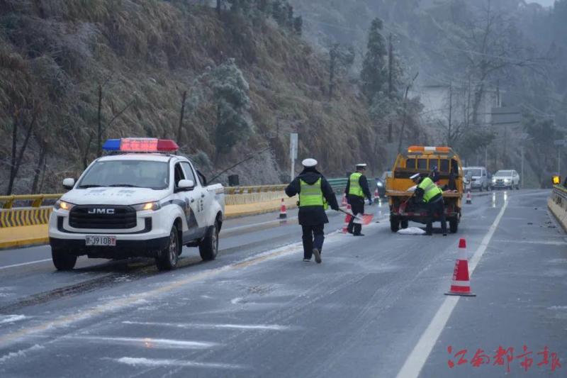 全市主次干道共有12處結(jié)冰路段 8個高速收費站封控