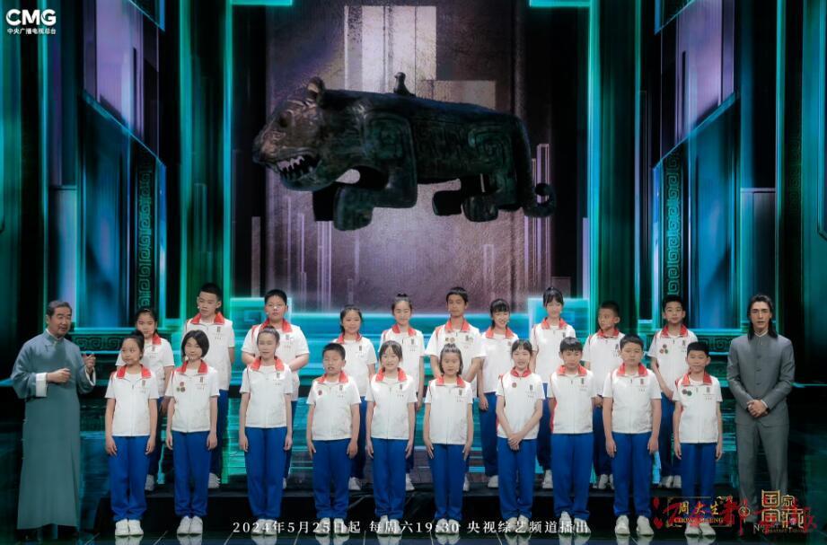 6月8日,20名來自江西省博物館小小志愿者登上央視《國家寶藏》節目舞臺,成為伏鳥雙尾青銅虎的守護者,一同喊出口號——“我們是江西省博物館小小講解員,我們志愿守護伏鳥雙尾青銅虎,守護歷史,守護生生不息。”少年拔節生長,文明充滿生機,這不僅是這些孩子們的央視首秀,也是《國家寶藏》節目開播7年來,首次迎來小小講解員。