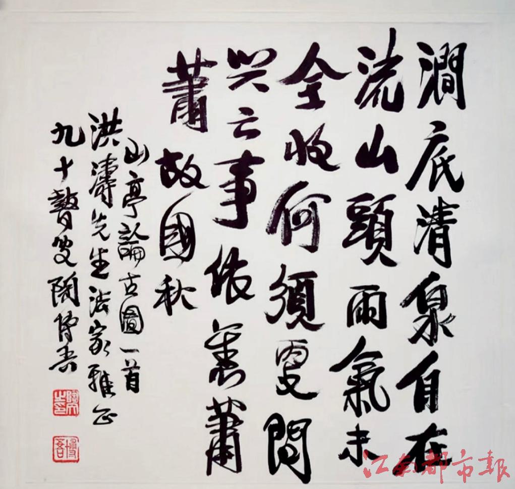 陶博吾書法最大的閃光點(diǎn)就是“自然”,他的字書寫隨性,流暢通達(dá);結(jié)字也隨心應(yīng)手,毫不做作,在不衫不履的狀態(tài)下,體現(xiàn)磊落坦蕩之態(tài)。直至90歲,陶老才在中國(guó)美術(shù)館舉行的一場(chǎng)個(gè)人書法展上聲名大振,被稱為“大器晚成”。據(jù)了解,此次展出的作品多是他于晚年創(chuàng)作,畫展展出時(shí)間至6月底。