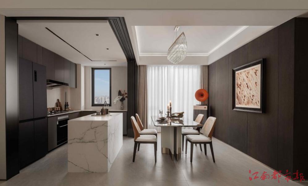 客餐廳采用當(dāng)下最流行的LDK一體化設(shè)計(jì)(客廳+餐廳+廚房),打破傳統(tǒng)空間壁壘。約5米寬廳,可容納10人以上家庭聚會(huì),搭配巨幕激光電視,周末約上好友在家就能體驗(yàn)IMAX級(jí)觀影。