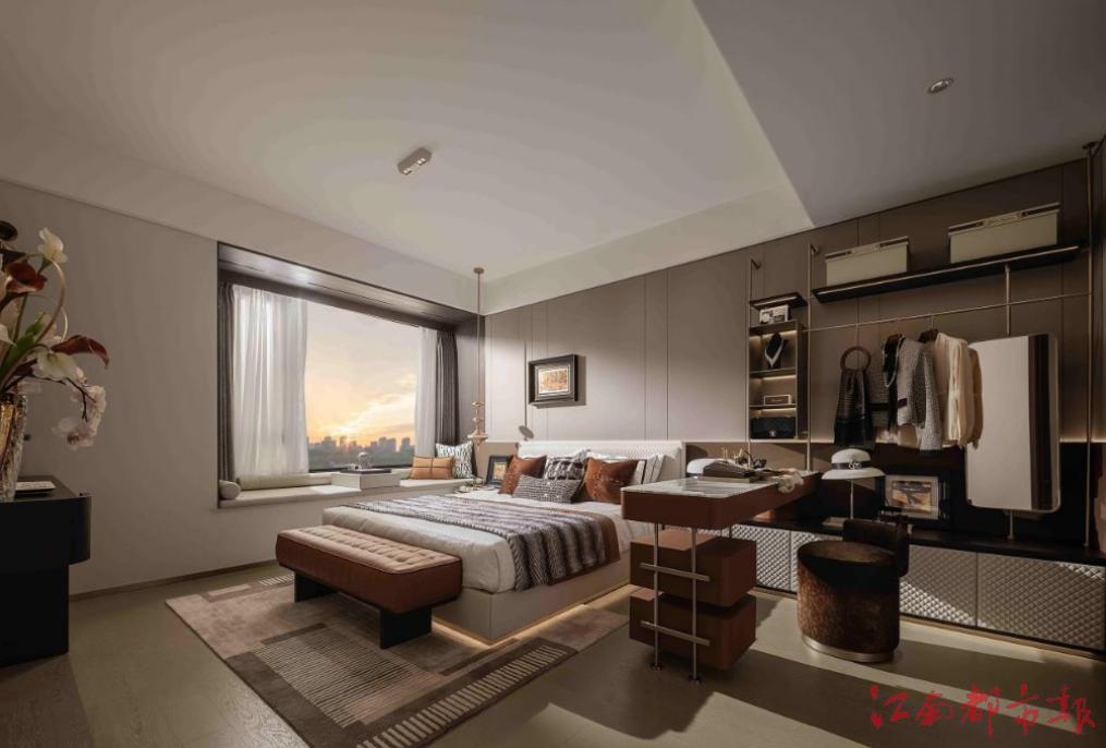 主臥套房約3.8米開間(比市面常規(guī)戶型寬20cm),配置獨(dú)立衛(wèi)浴、步入式衣帽間,飄窗全贈(zèng)送且高度僅40cm,可改造為女主人的自然采光梳妝臺(tái)。