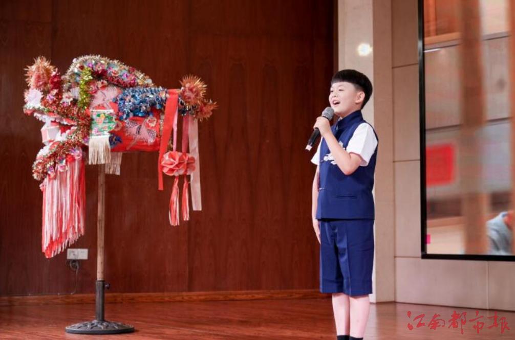 比賽特邀五位權(quán)威專家組成評審團(tuán),成員包括南昌大學(xué)人文學(xué)院李洪華教授、南昌市作協(xié)主席王蕓、江西省朗誦與語言藝術(shù)協(xié)會劉海濤等文化界知名人士。9名參賽選手圍繞“悅·讀贛版書”主題展開精彩角逐。他們從《月光媽媽》《巴顏喀拉山的孩子》《會飛的板凳龍》等贛版精品圖書中汲取靈感,結(jié)合自身成長經(jīng)歷,以真摯的語言和深刻的思考,探討了鄉(xiāng)土情懷、自然保護(hù)與生命教育等多元主題。選手鄧懿晏借《月光媽媽》傳遞親情的溫度;聶冉汐通過《三江源的扎西德勒》發(fā)出守護(hù)生態(tài)的呼吁,展現(xiàn)了青少年對文化的理解力與社會責(zé)任感;馮梓騰更是別出心裁,將非遺“板凳龍”的龍頭帶到現(xiàn)場展示,生動詮釋了對傳統(tǒng)文化保護(hù)的熱忱。