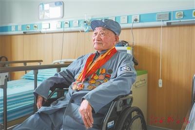 初秋時節,中國人民解放軍聯勤保障部隊第908醫院的一間病房內,99歲的新四軍老戰士尤云儒再次穿上他掛滿勛章的軍裝,陽光透過窗戶灑在歷經歲月洗禮的勛章上,折射出點點金光。這位17歲便加入抗日游擊隊奮勇殺敵的戰士,如今臉上布滿溝壑,顴骨高挺,笑容慈祥,但眼神中依然透露著堅定與果敢。