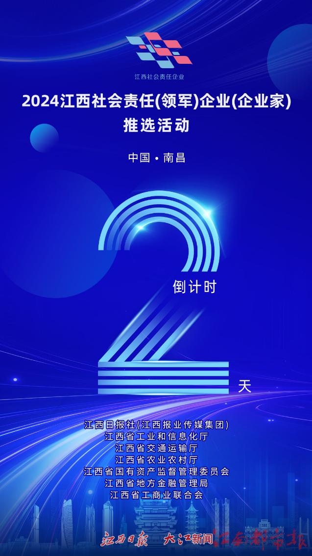 倒計時兩天!2024江西社會責任(領軍)企業(企業家)推選活動將于9月5日在南昌舉行