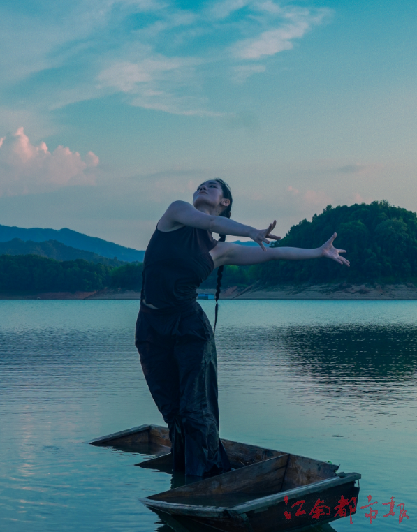 舞者陳之璐在武功山進行舞蹈影像創作。攝影:王廣
