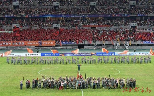 “若要盼得紅軍來,嶺上開遍映山紅”,吉安主場響起《映山紅》的熟悉旋律,喚醒“刻在骨子里的紅色基因”;九江主場的《為了誰》情景演出,將賽場內(nèi)外思緒集體拉回到九八抗洪時,軍民攜手守堤的感人場景。