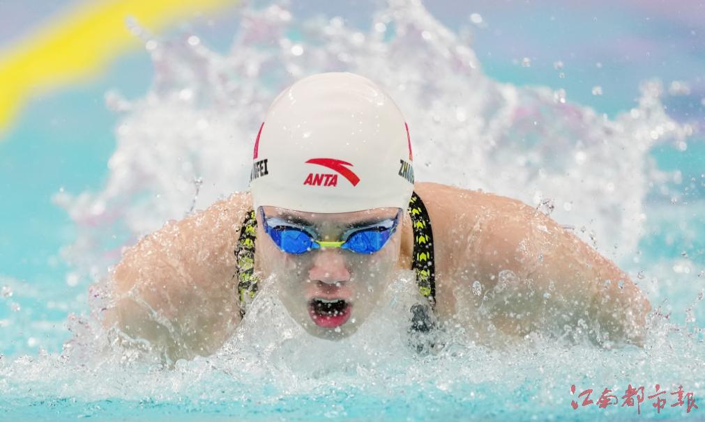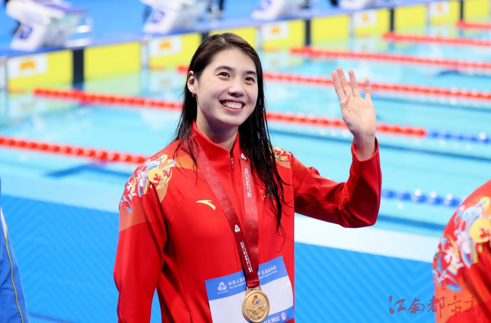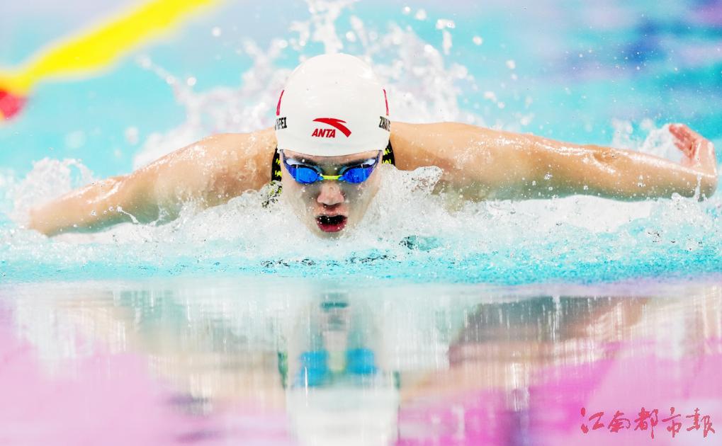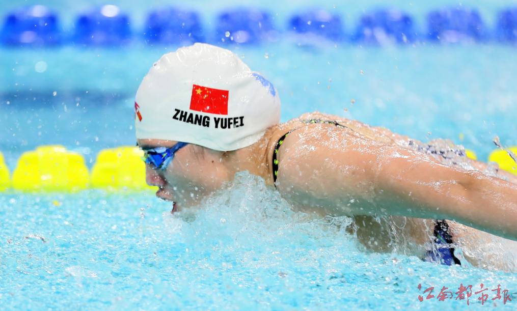 江南都市報訊 全媒體特派記者許南平攝影報道:11月11日晚,第十五屆全運會游泳女子100米蝶泳決賽,江蘇名將張雨霏以56秒88成功衛冕,這是她在本屆全運會上獲得的首金。本場比賽參賽的有來自湖北的江雨瑤,浙江的呂越、周鑫垟,遼寧的王靖卓,重慶的龔真琦和楊王詩雅,山東的王一淳。其中,最受關注的就是張雨霏,作為“蝶后”,在此前進行的100米蝶泳預賽,張雨霏以58秒84的成績排名小組第一,順利晉級半決賽。隨后的半決賽上,張雨霏游出了57秒22的成績,以明顯優勢晉級決賽,不過對于此成績,她不是特別滿意,表示自己的狀態不是很好。11月10日,本屆全運會游泳比賽在深圳大運中心游泳館拉開帷幕,上演速度和激情的盛宴,為期8天的比賽將產生總計41枚金牌。